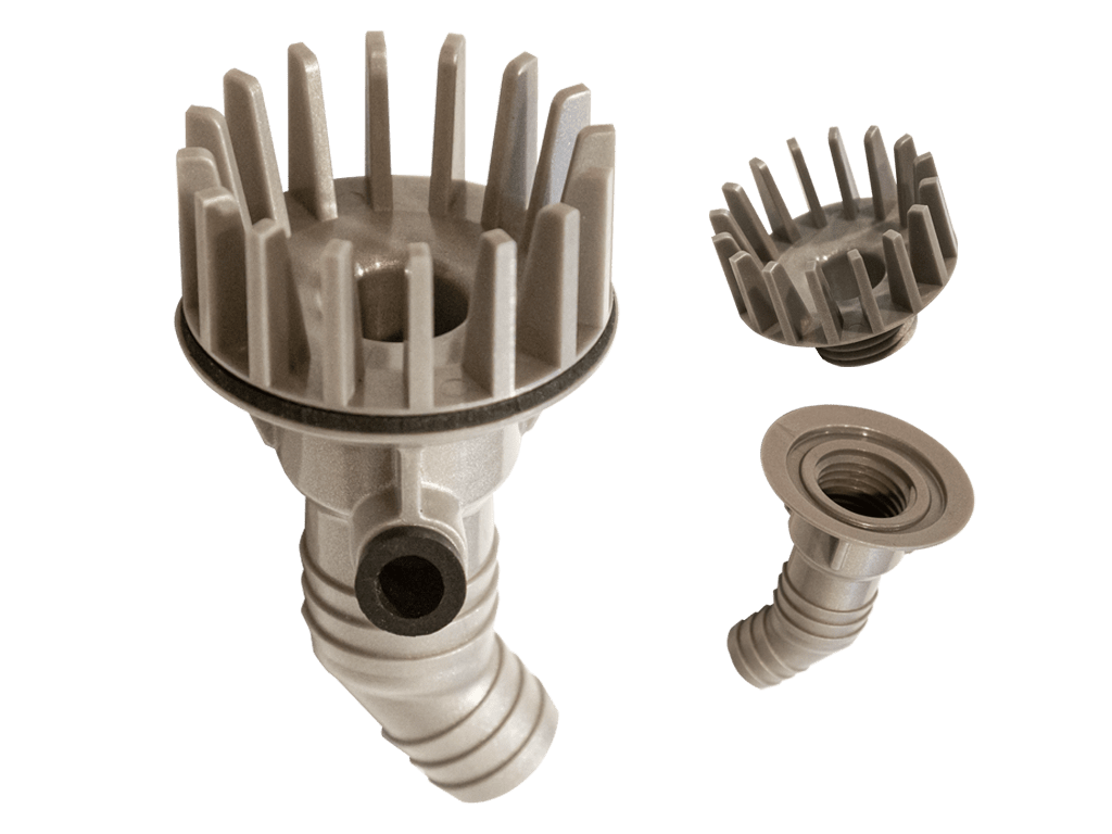 ClimaLines adapter med lövkorg för Ø25mm trågutlopp, passar slang ID Ø20 och 25mm. Levereras med Pancake trågen sedan 2019.