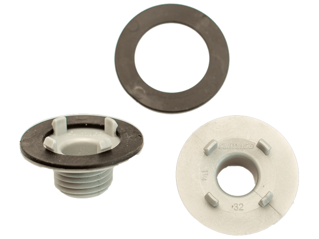 En smart slangadapter för anslutning av avledningssatser för utomhusdel med ett runt Ø16-18-20-25-32-38 och Ø42mm. Satsen har sju passdelar underlättar när du är osäker på vilken dimension utloppet har. Adaptern har en ingång för värmekabel på undersidan, vilket underlättar vid montering och service.