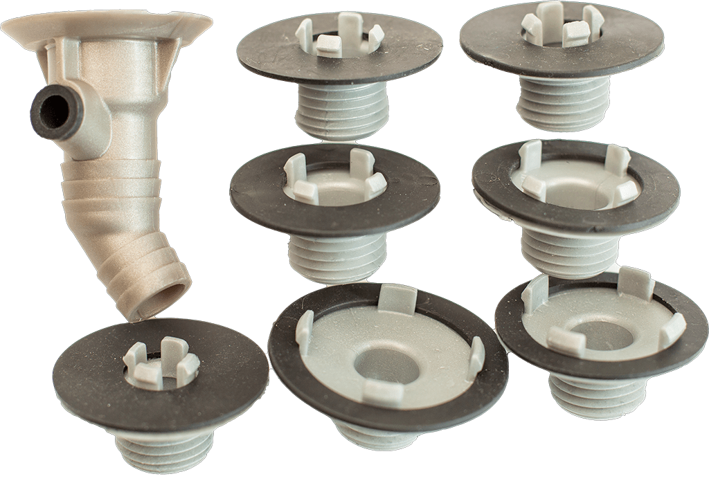 - Slangadaptersats för utedelar, med utloppen Ø16-18-20-25-32-38 och Ø42mm.
