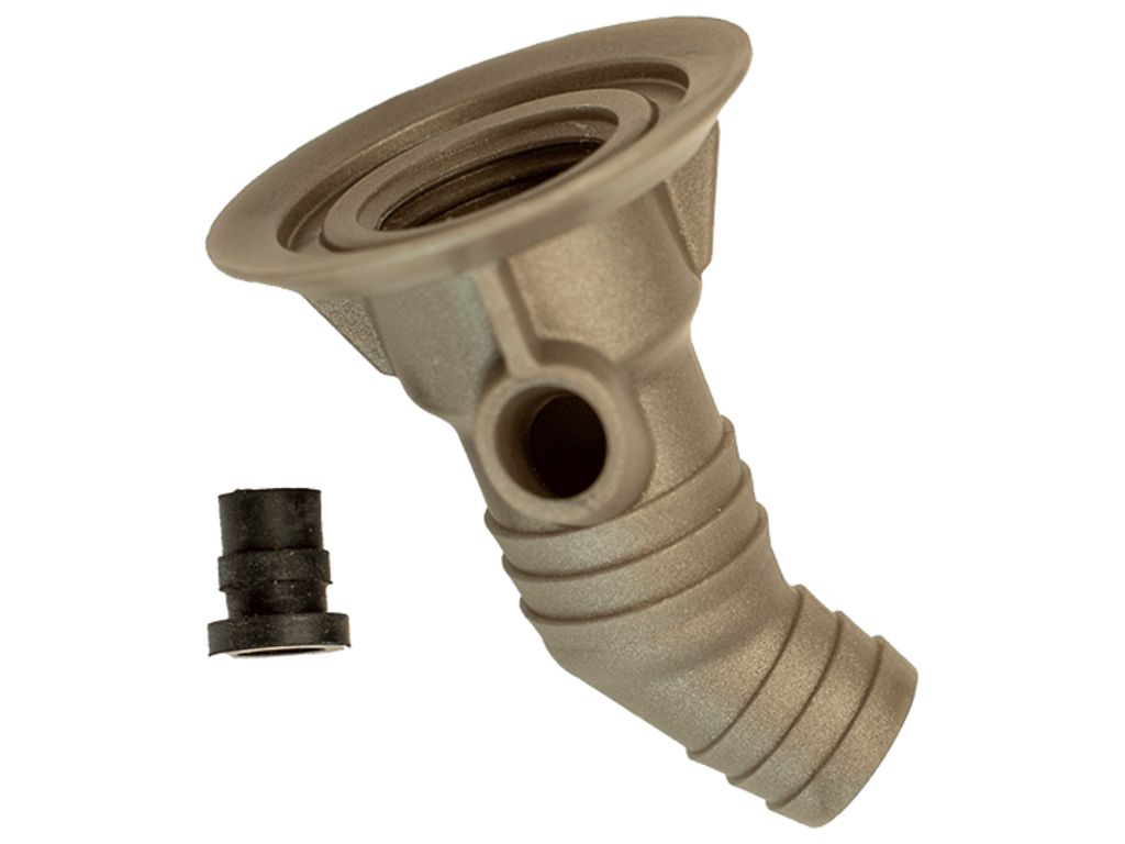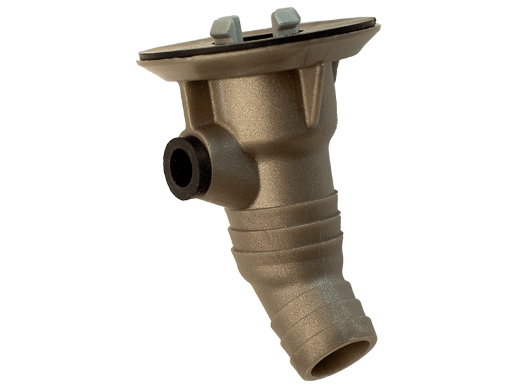 En smart slangadapter för anslutning av avledningssatser för utomhusdel med ett runt Ø20mm utlopp. Adaptern har en ingång för värmekabel på undersidan, vilket underlättar vid montering och service.