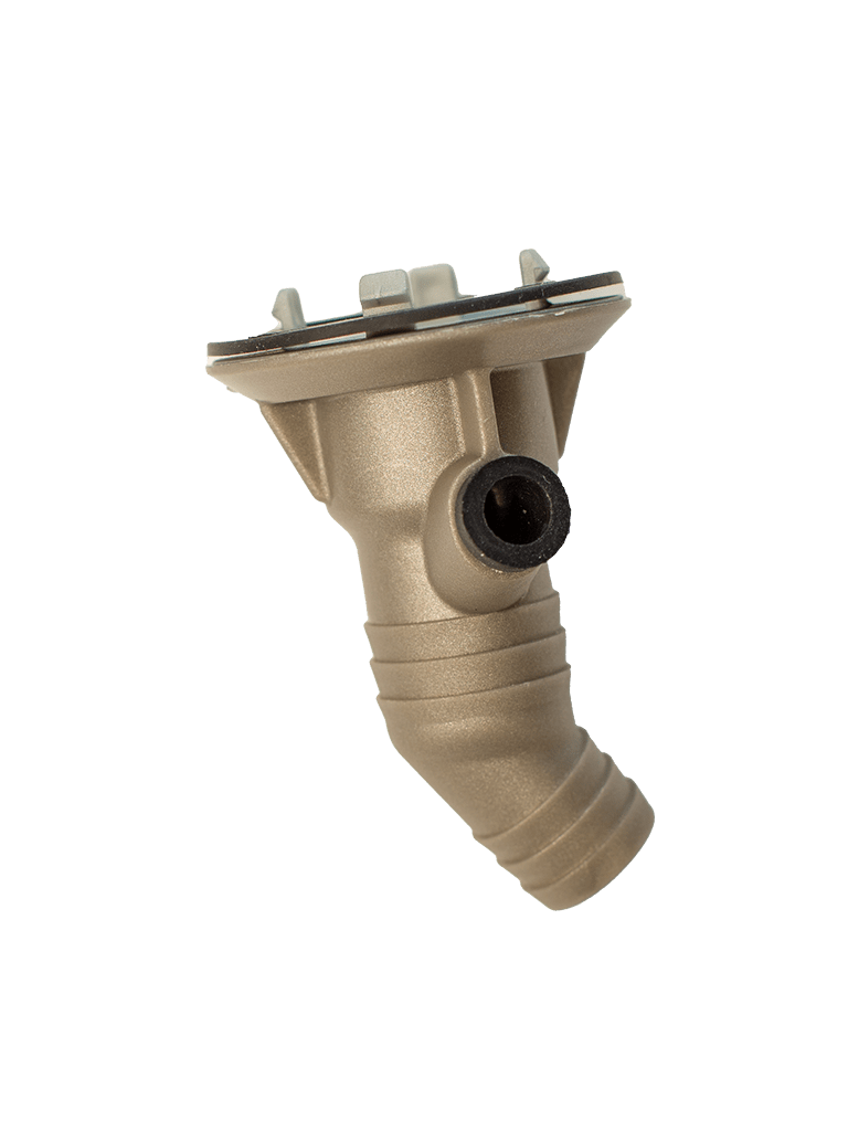 En smart slangadapter för anslutning av avledningssatser för utomhusdel med ett runt Ø32mm utlopp. Adaptern har en ingång för värmekabel på undersidan, vilket underlättar vid montering och service.